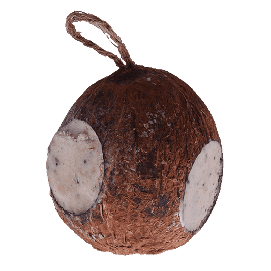 Sortenæb kokosnød med platform - god for fuglene at sidde på