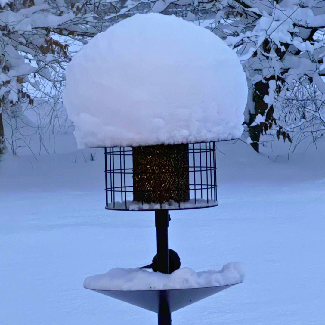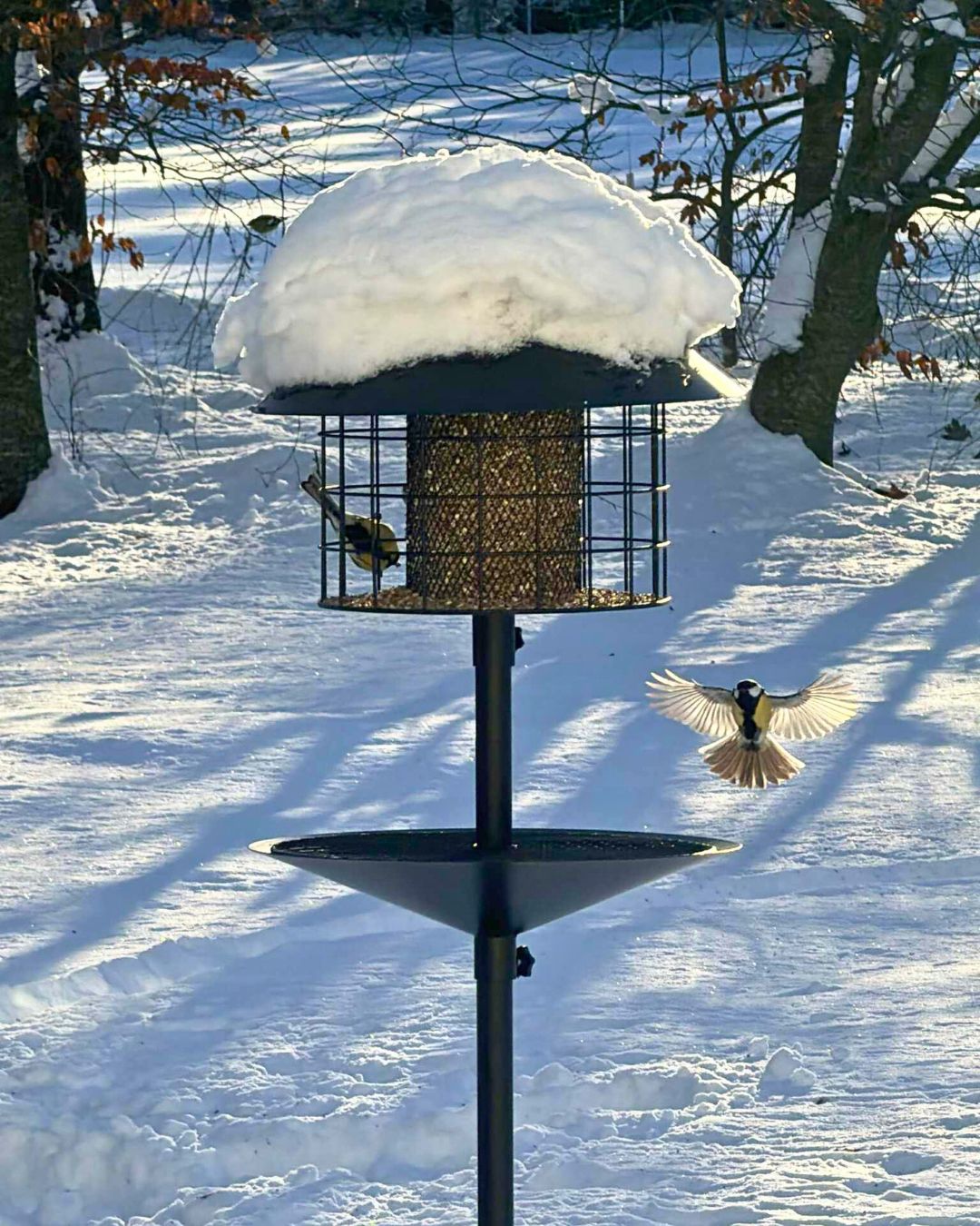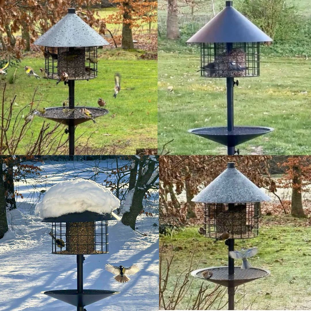 Taget er nemt at tage af, så man let kan fylde foder i. Derudover beskytter det mod regn, sne og lignende.
